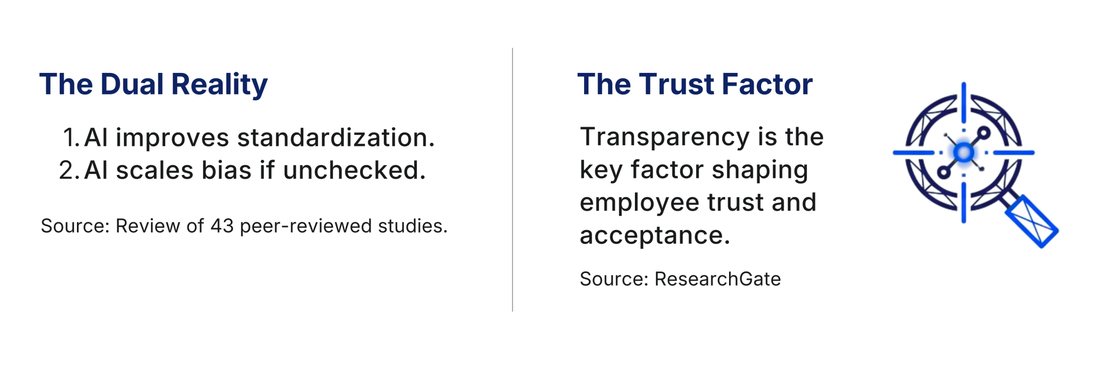 The most robust academic research doesn’t frame this as “AI replaces HR.” It frames it as a socio-technical system, where outcomes depend on design, oversight, and data.