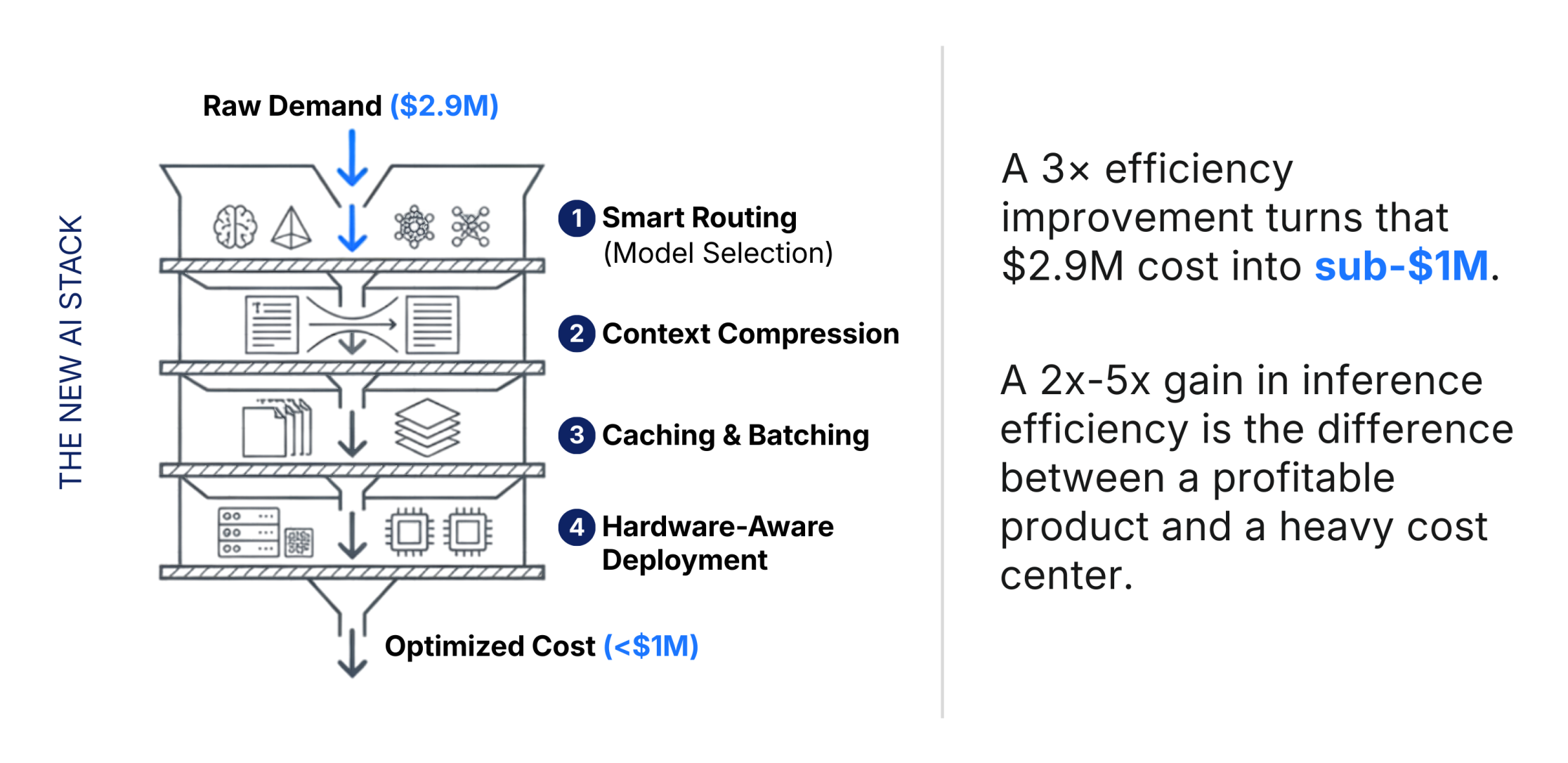 Routing the right requests to the right model. Context compression. Caching. Batching. Hardware-aware deployment. Better agent design (fewer loops, fewer tool calls, tighter retrieval). These are not engineering details. They’re cost architecture.