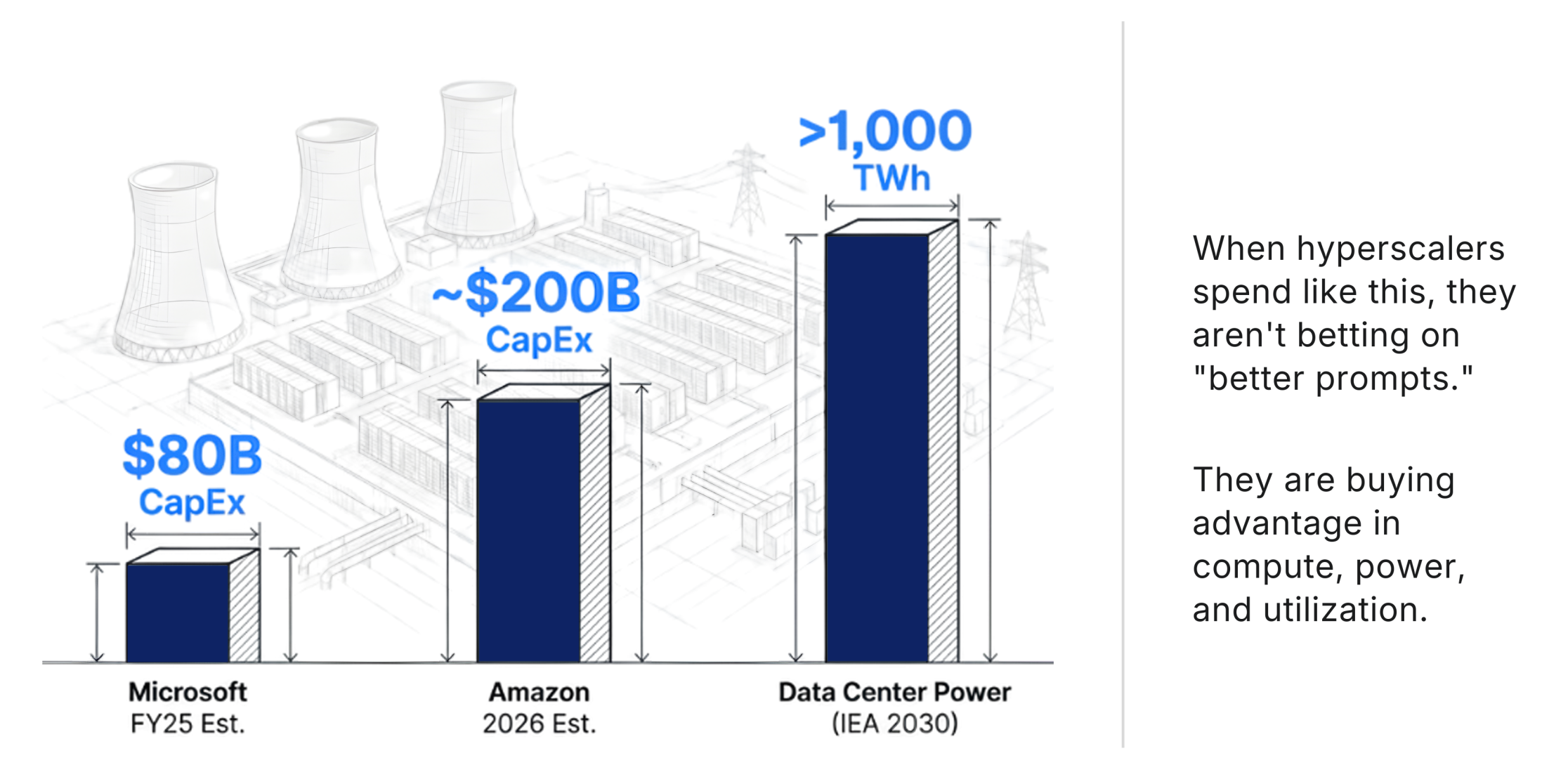 When hyperscalers spend like this, they’re not betting on “better prompts.” They’re buying advantage in compute, power, and utilization.